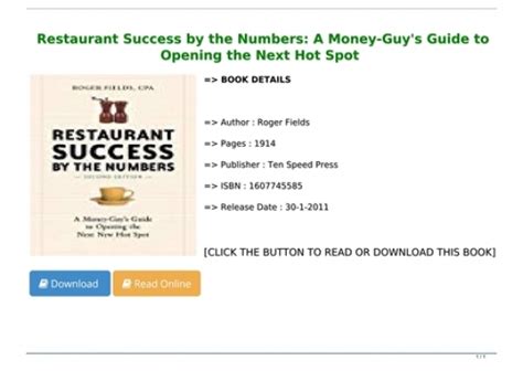 Read Restaurant.Success.by.the.Numbers.A.Money.Guy.s.Guide.to.Opening.the.Next.Hot.Spot Doc